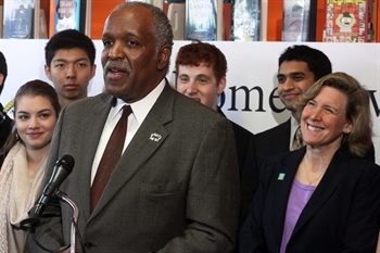 Quinn, along with several city, business and university officials, attended a press conference on the grant Friday at the Chicago Main public library in Evanston.