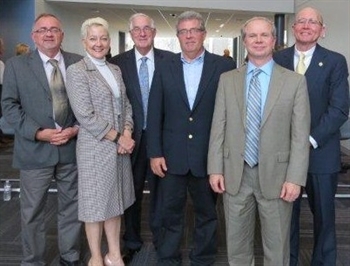 PHOTO CUTLINE: Speakers at the iFiber event Oct. 16, included from left: Jerry Hicks, LaSalle County Board Chairman; Ellen McCurdy, Senior Policy Advisor for Illinois DCEO; John Lewis, iFiber Executive Director; State Rep. Frank Mautino; Glenn Trommels, iFiber Board Chairman/CIO, City of Rockford; and Dr. Jerry Corcoran, IVCC President.